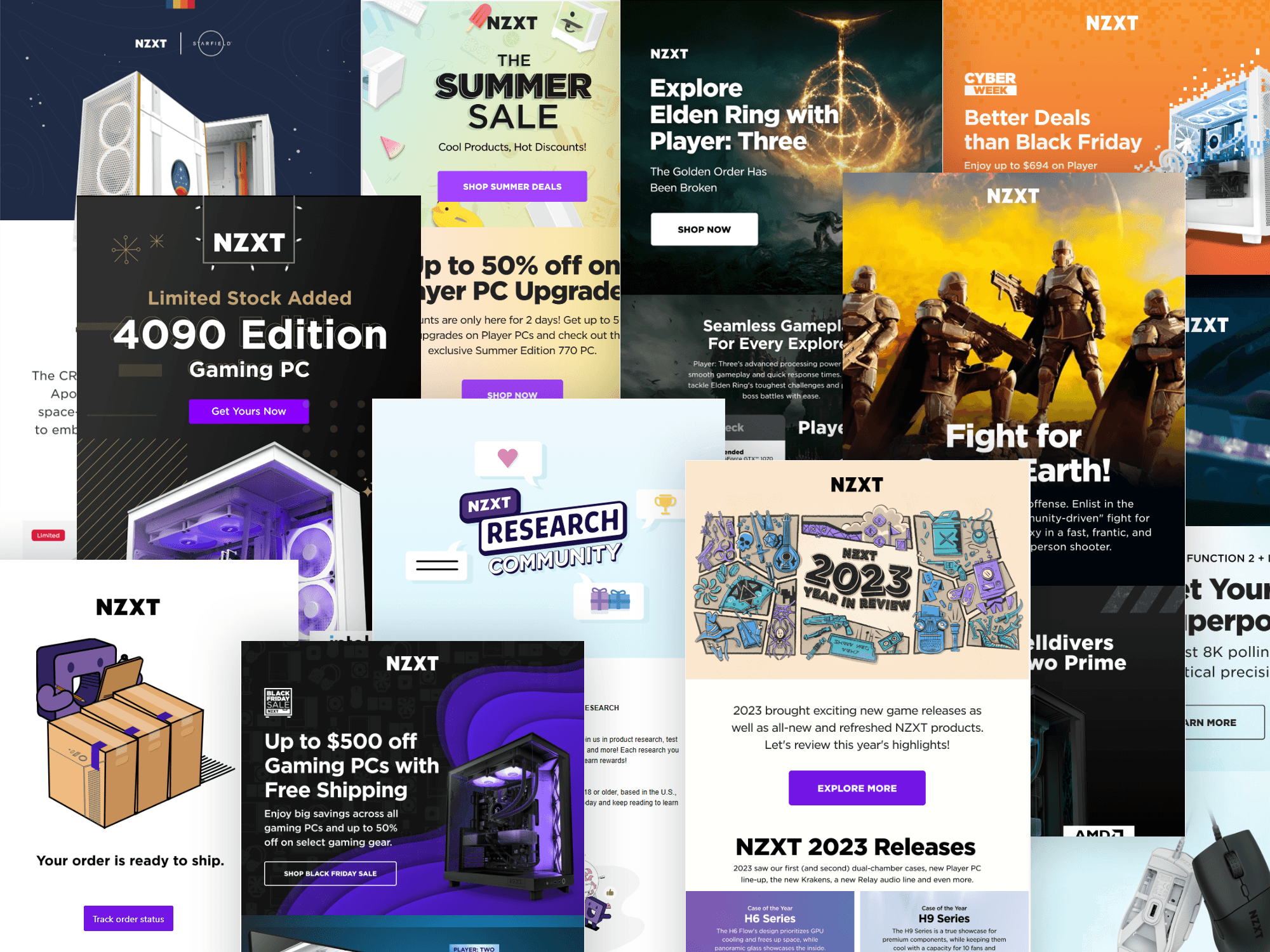 Over the years, I led the creative team in collaboration with marketing to transform our campaigns, shifting the focus from technical details to how NZXT fits into people's lives. By embracing storytelling and brand identity, we built campaigns that resonated emotionally, making NZXT more than just a product—it became a part of our customers’ journey (This didn't just raise our visual standards but it contributed to our rise to market dominance achieving #1 market share in PC Cases, #2 in AIO CPU coolers and Top 5 spots in other component categories).