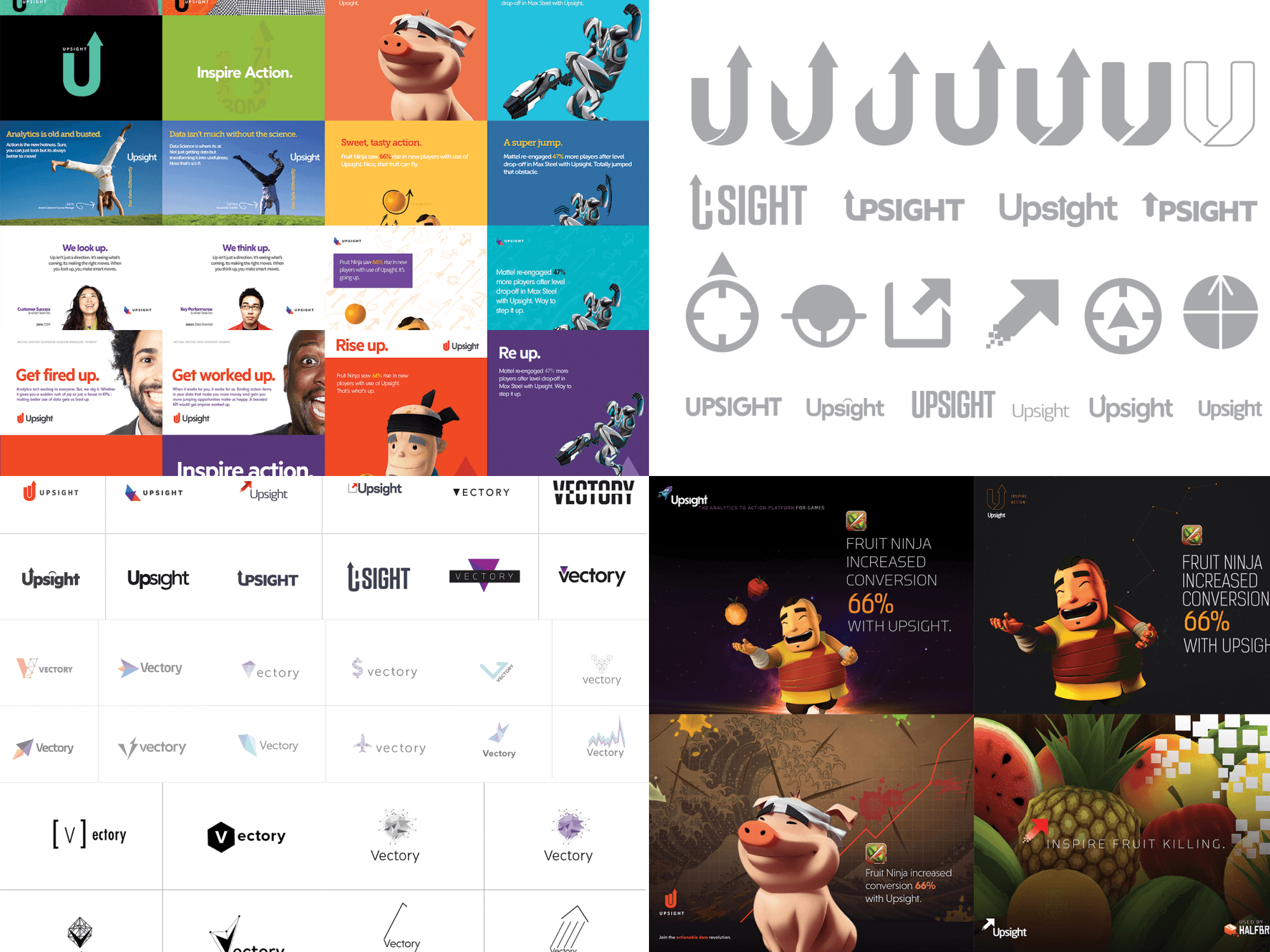 Brand treatment explorations, logo concepts and final Upsight approved logo and colors