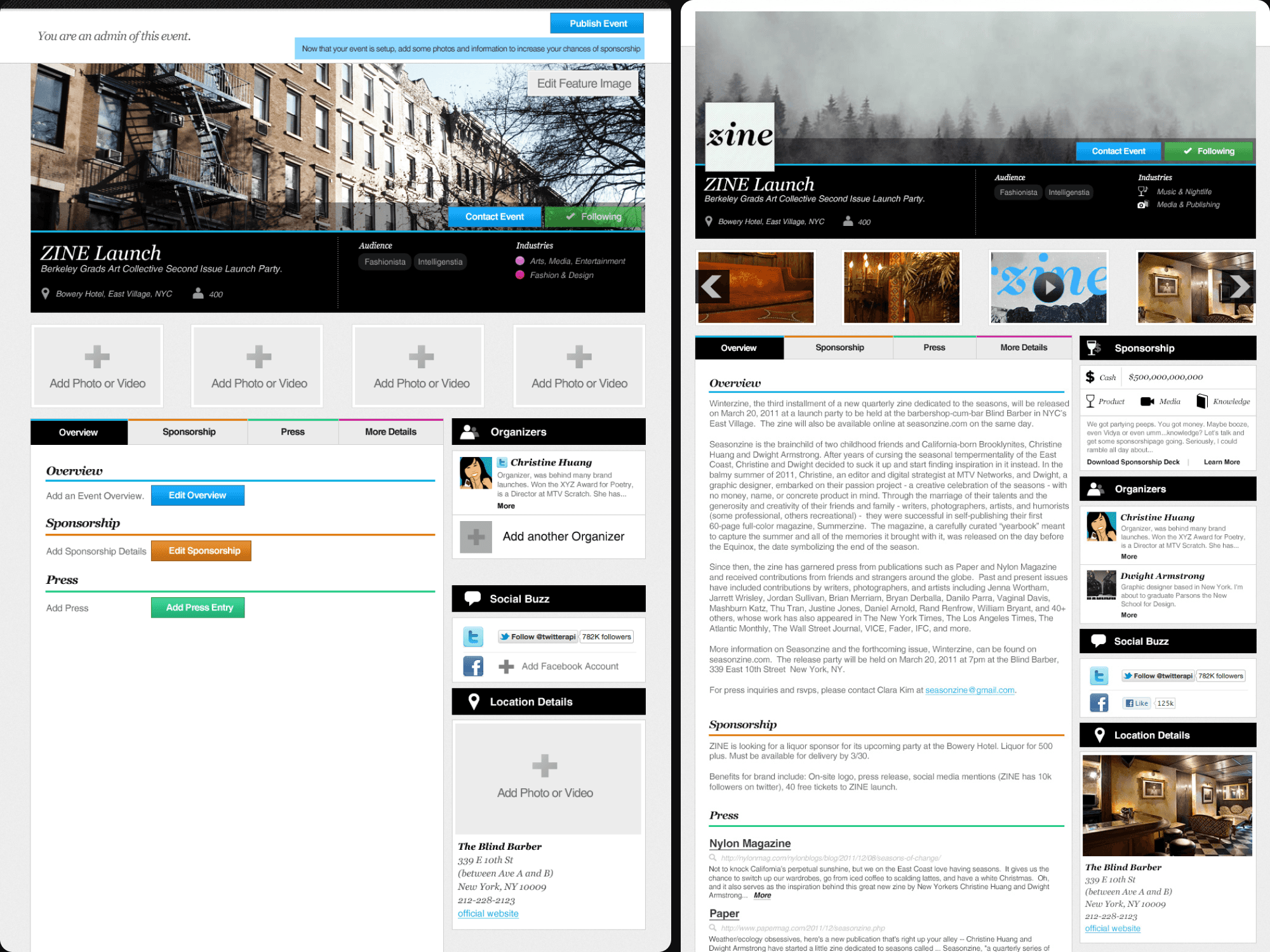 I worked with the founders to ideate and develop a new identity, marketing and app UI/UX that was more accessible to corporate sponsors but also maintained the vibe of an independent art-house magazine to help it connect with popular influencers and event managers.