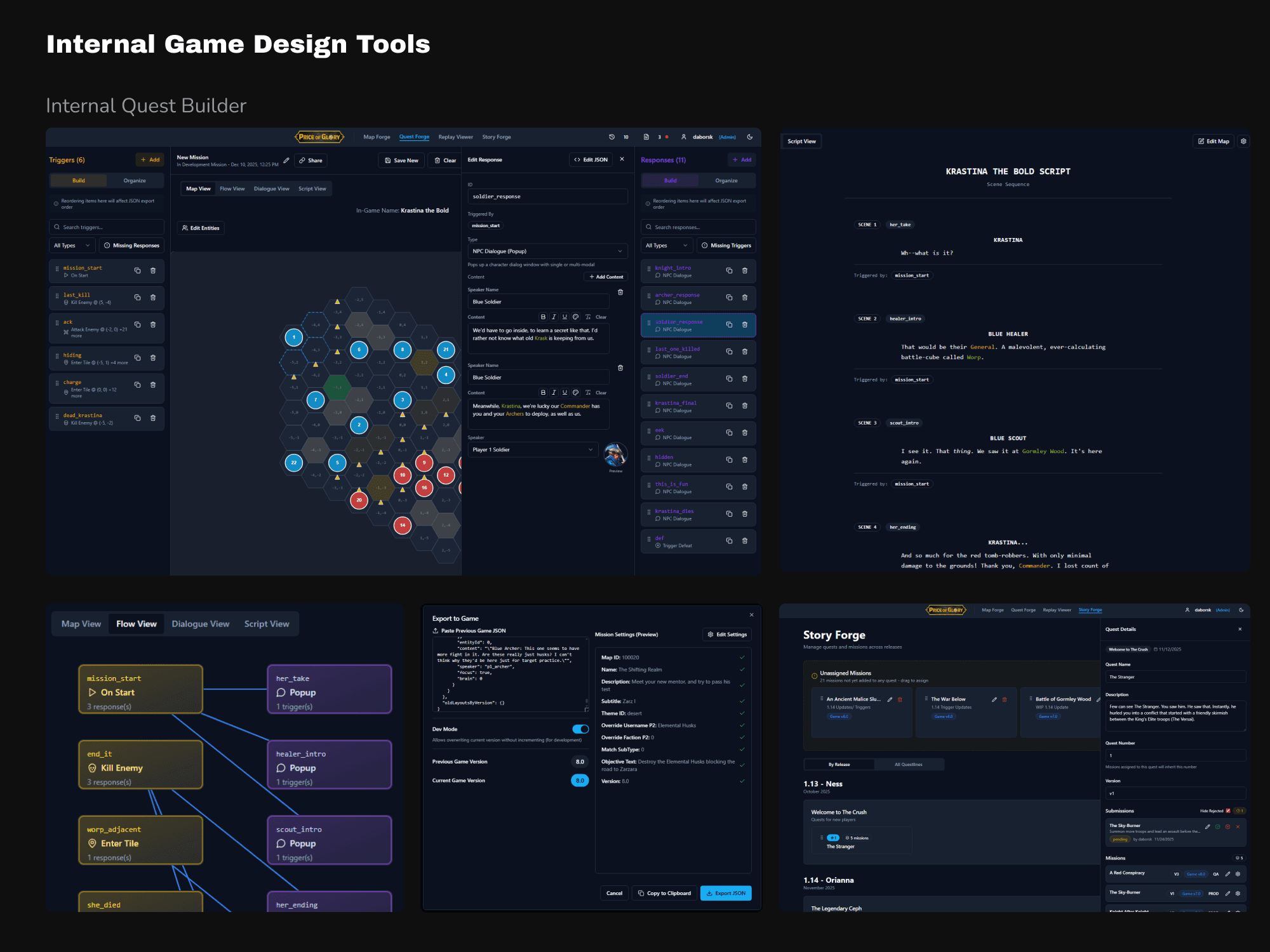 To fully unlock the new JSON-based content system, I designed and built a set of internal development tools using AI-assisted code workflows (Lovable + React). Working directly at the data layer, I created a map editor, quest builder, and story planning tool that allowed designers to author, iterate, and validate content without engineering support.
