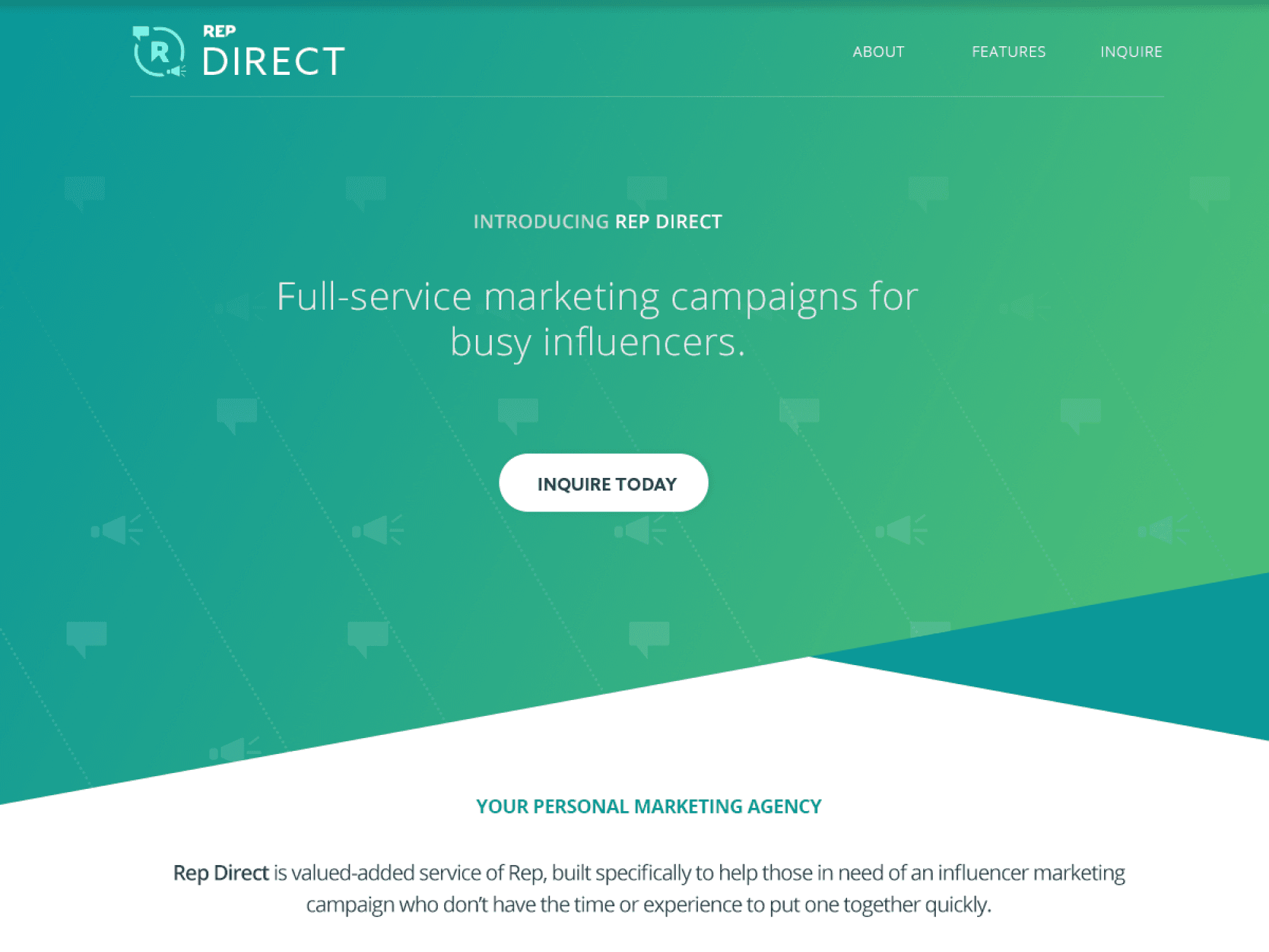 The first version of Rep was a success but it was a simple marketplace to facilitate connection - free for influencers, brands paid a fee. Rep provided tools to bid, share and communicate but didn't get involved in the transaction.