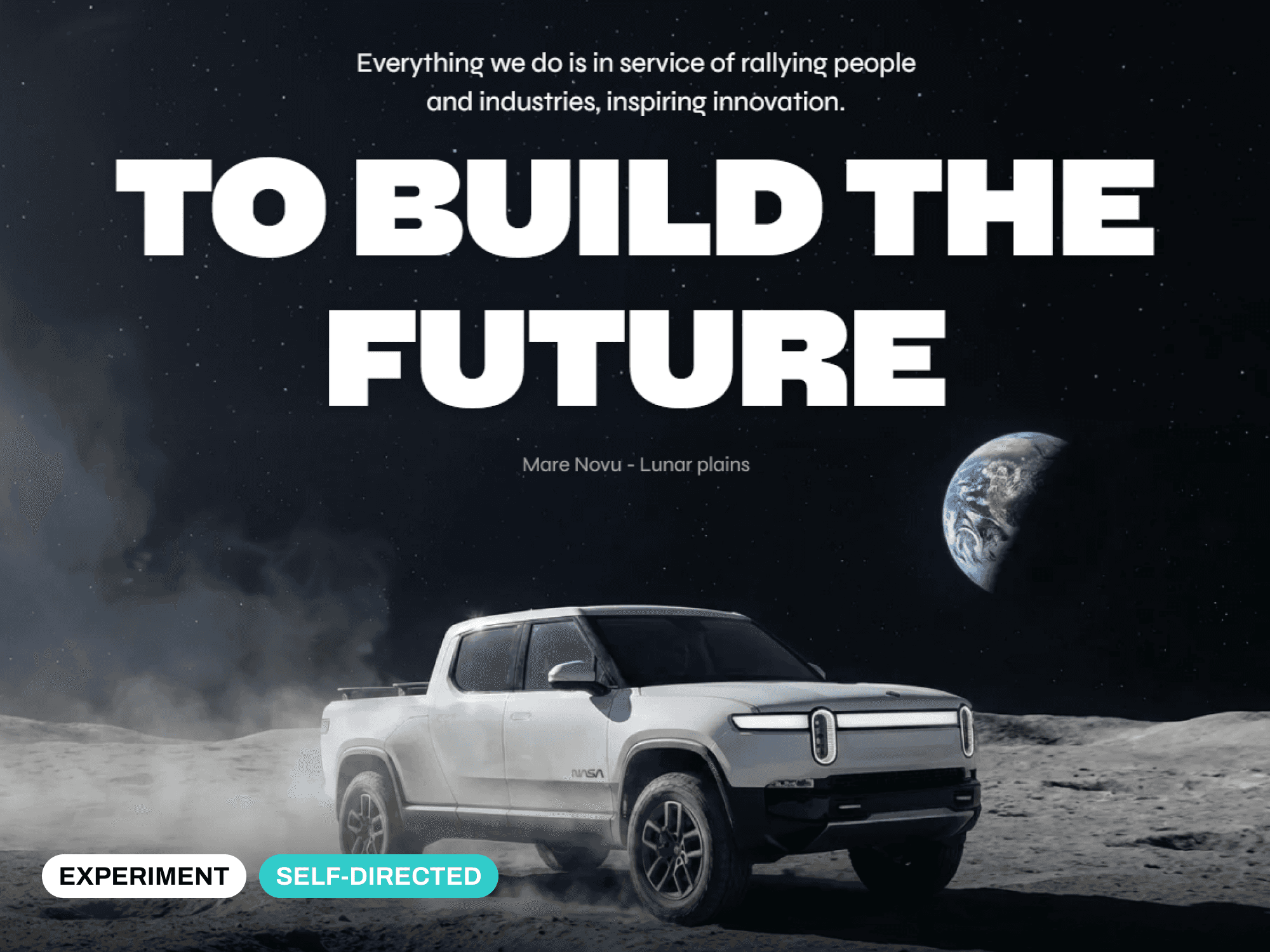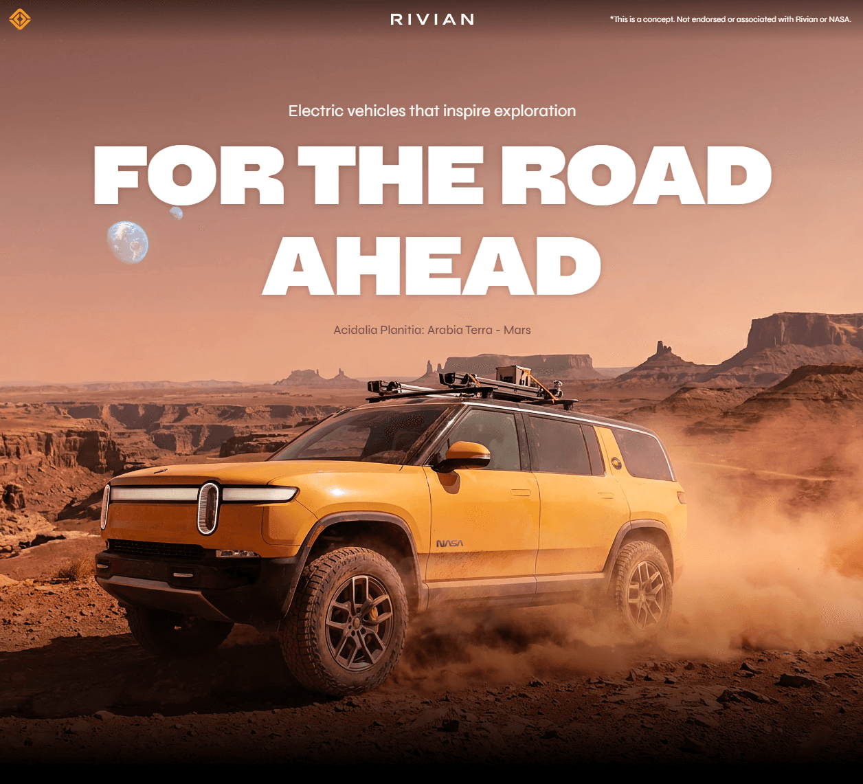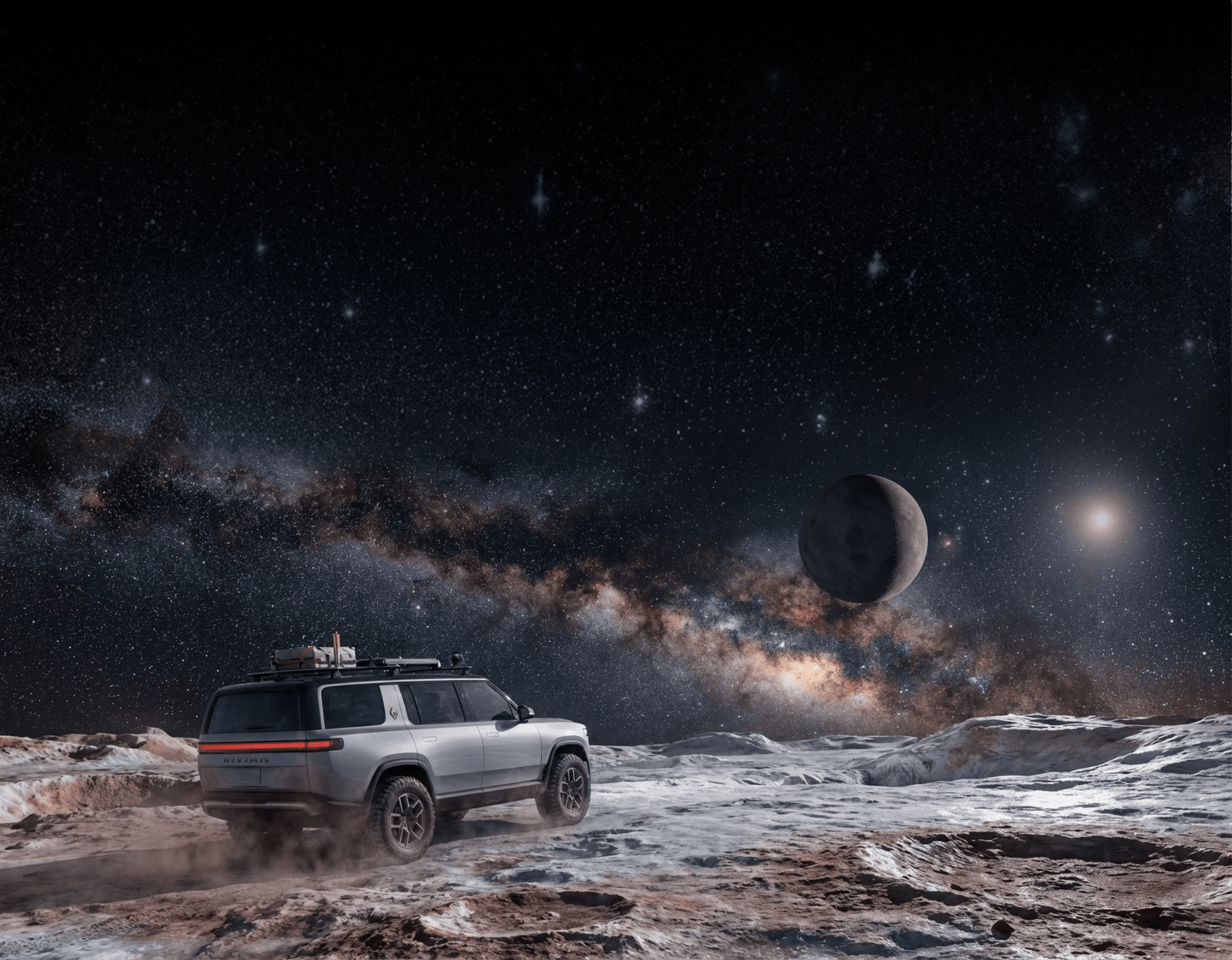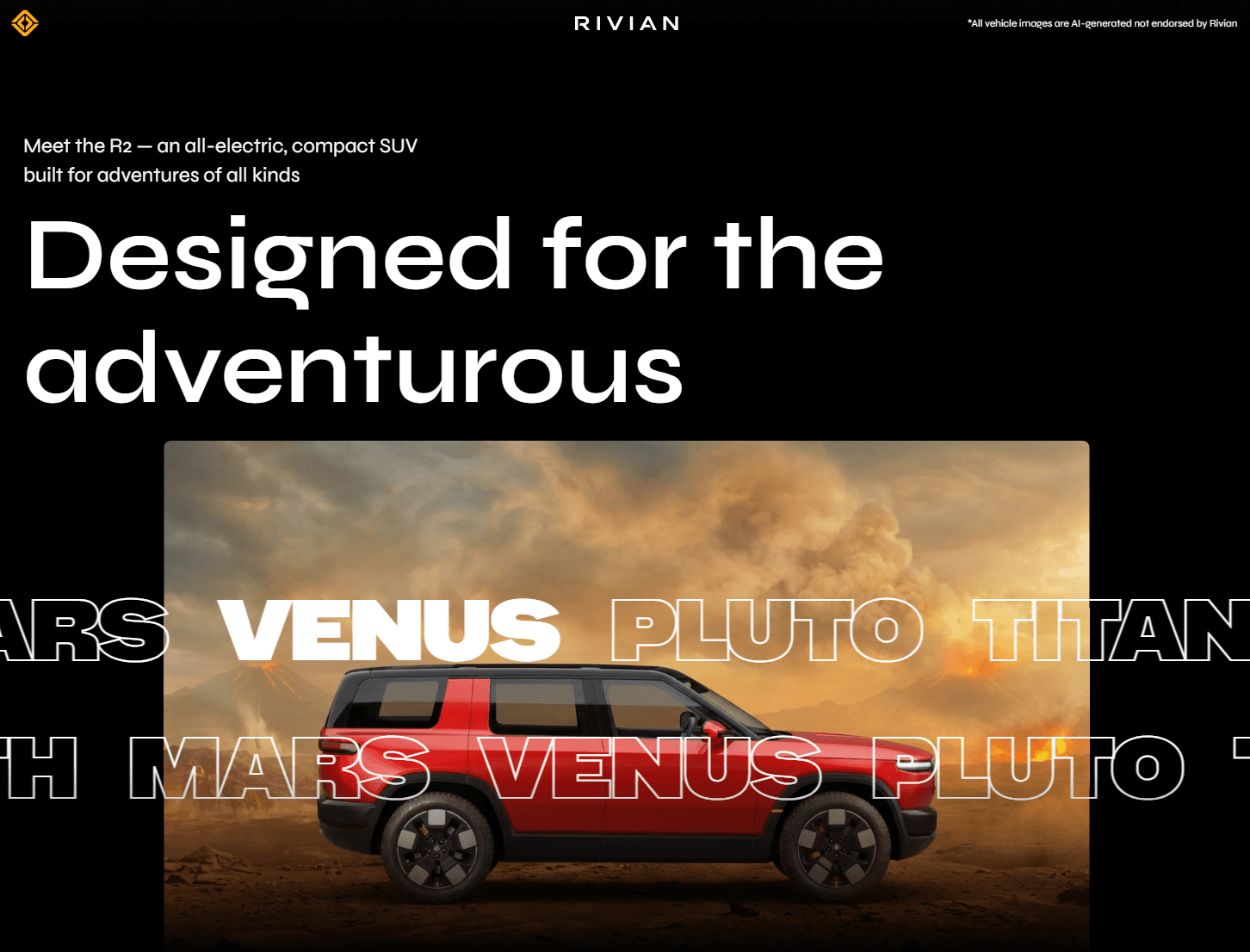I wanted the project to feel bold while staying authentic to Rivian’s brand. I pulled visual motifs and language from Rivian’s own materials around the future, adventure, and exploration to guide the overall tone.