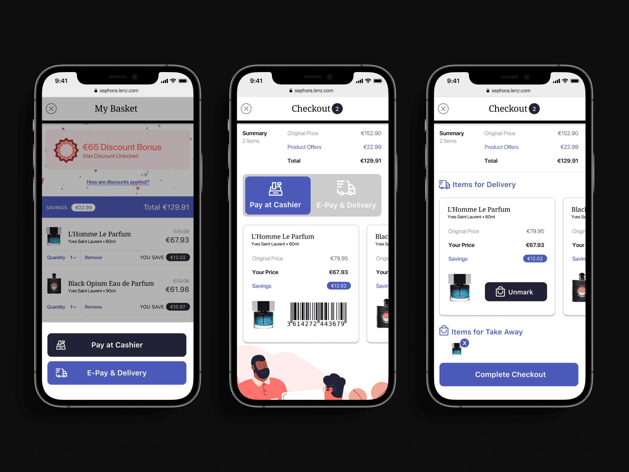 Scan, Pay & Go - Take away vs. Pay for delivery choice flow